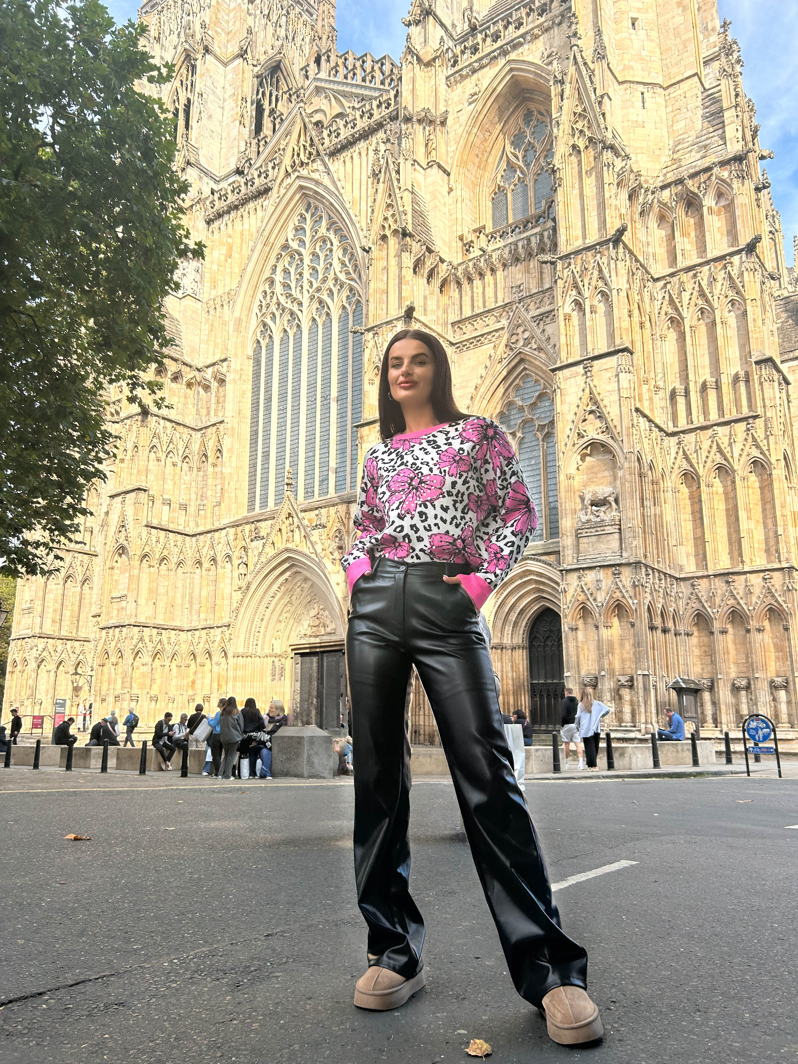 Show me your wild side, Doll! In a fierce monochrome leopard print, this trendy yet cosy jumper is the super versatile piece your wardrobe is craving right now. Those sparkling sequin pink bows add that pop of colour that will have everyone envious of your wild style! Pair with straight leg leather trousers and some sparkly silver heels to make the perfect winter outfit when your going out for cocktails with your girls.