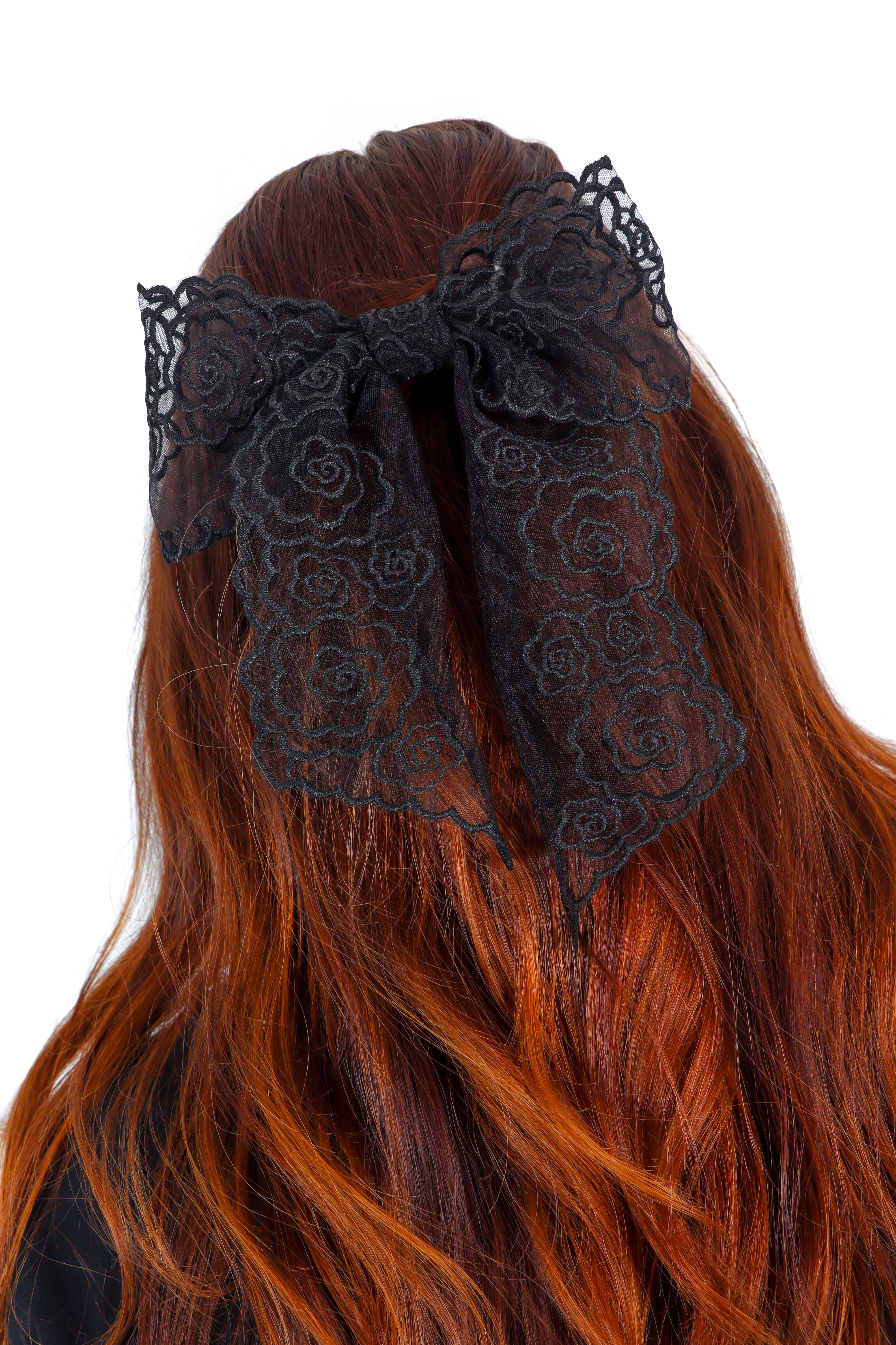 Bow Away - Black Floral Lace Bow Hair Clip