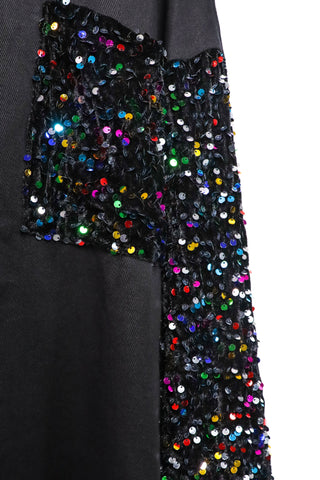 She's In Your Pocket - Black Denim Multi Sequin Sleeve Shirt