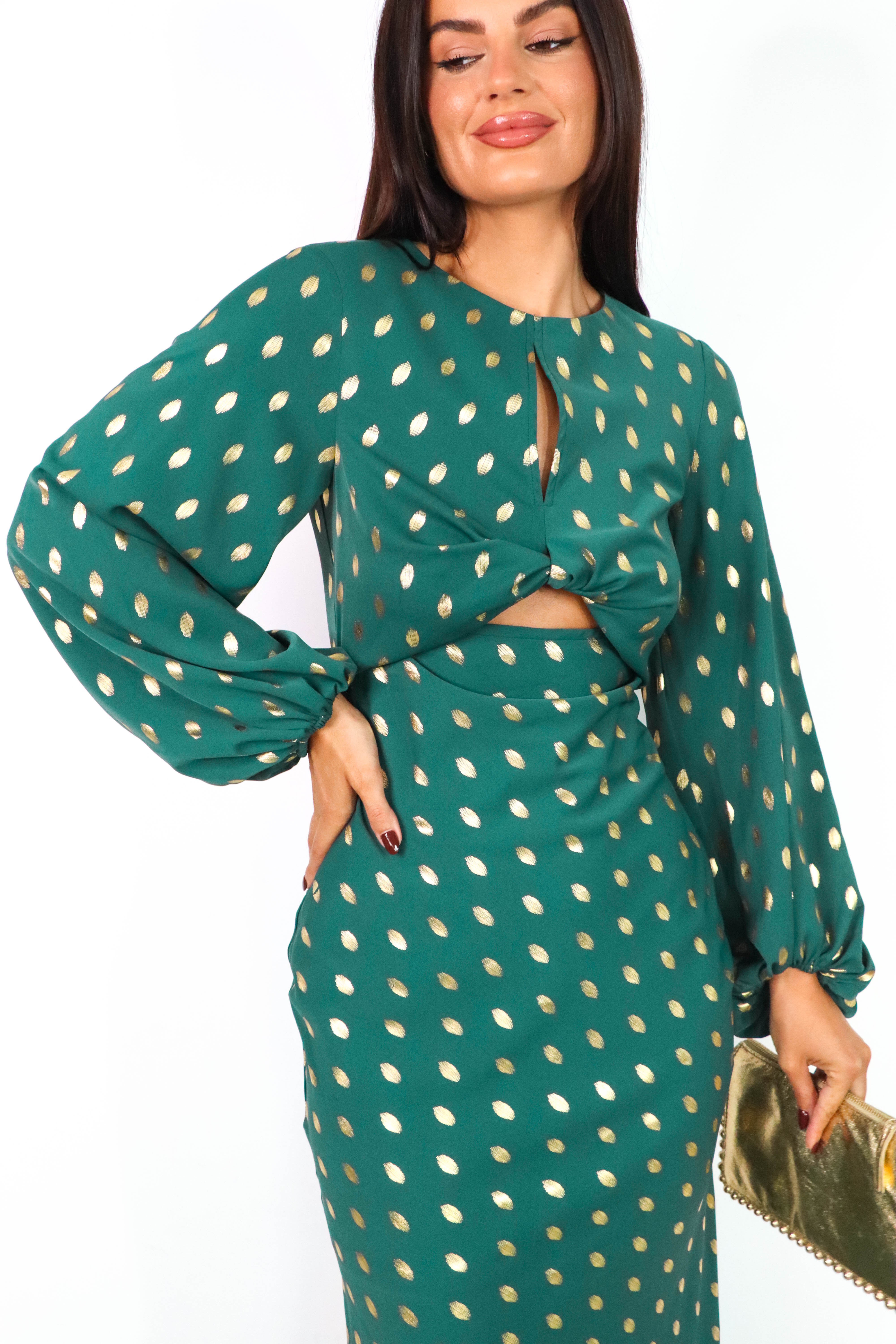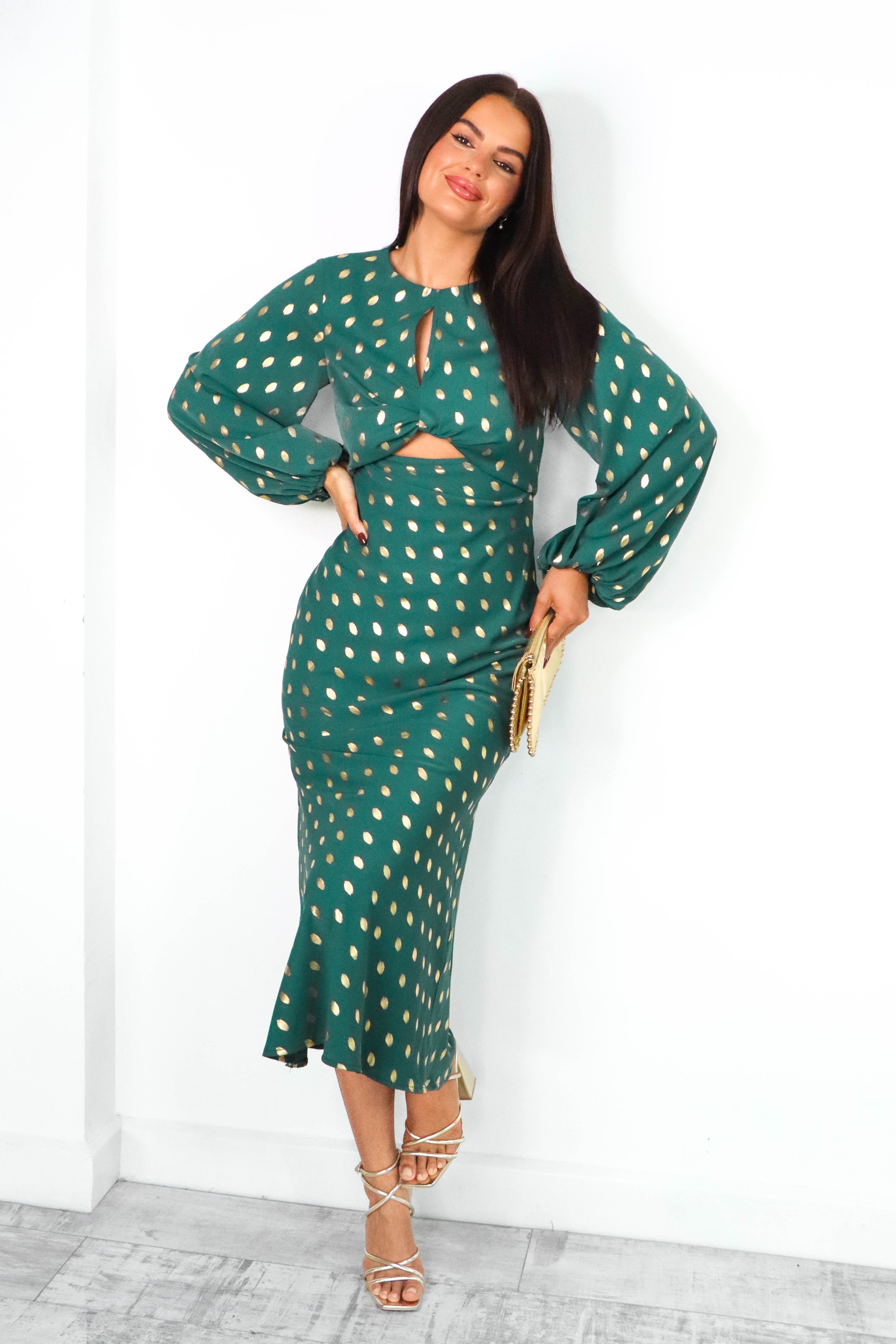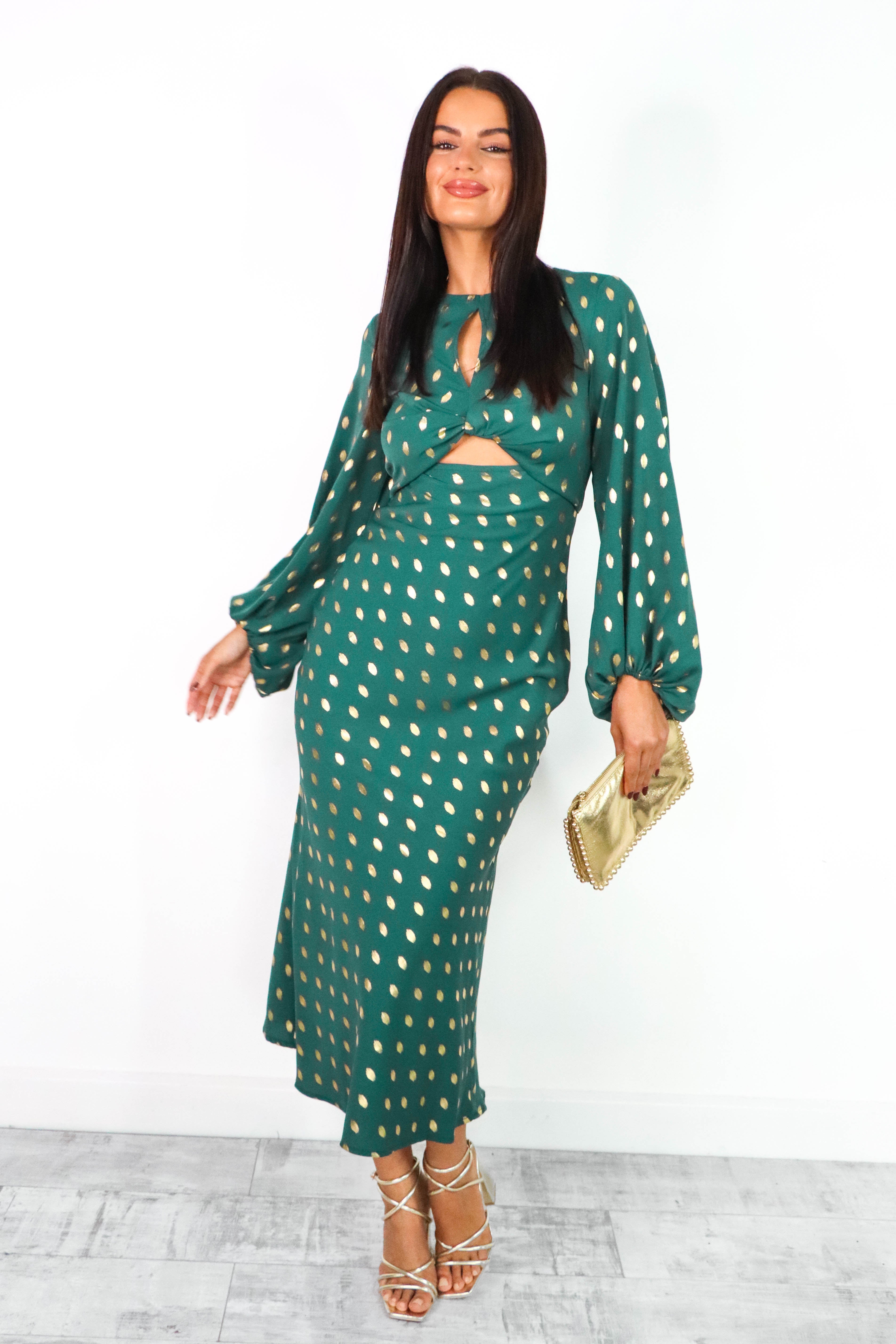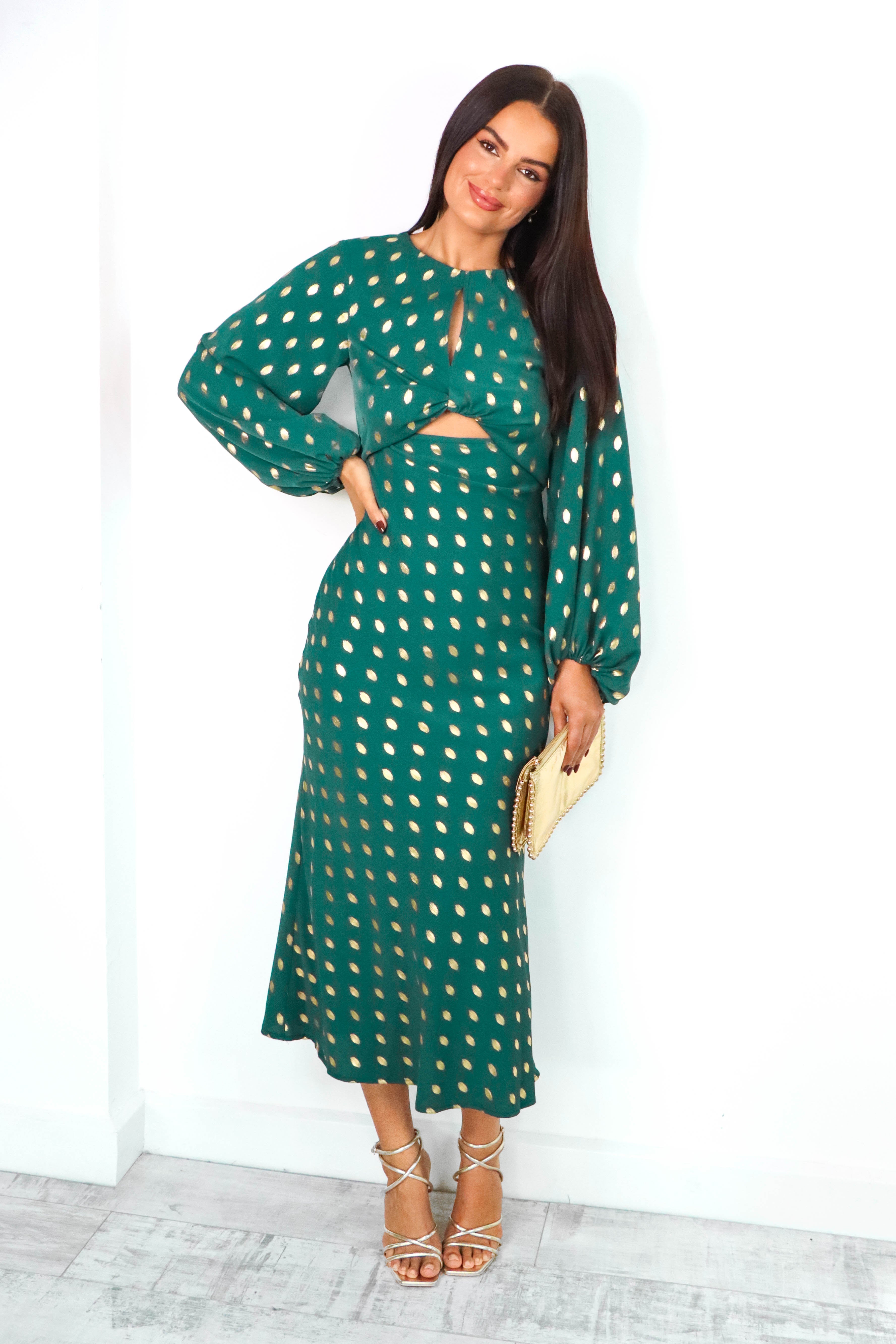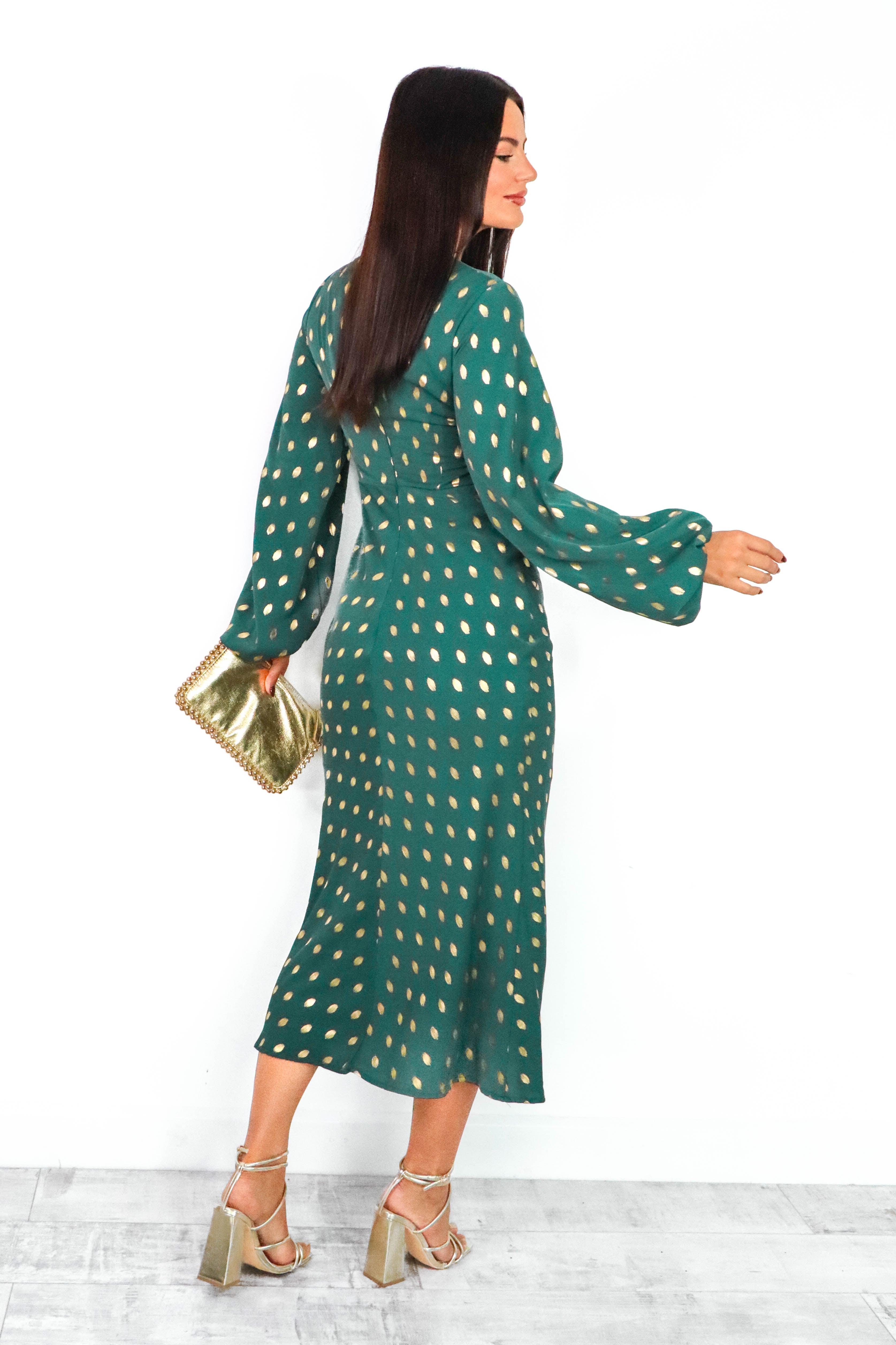 Cut Them Out - Forest Gold Foil Spot Midi Dress
