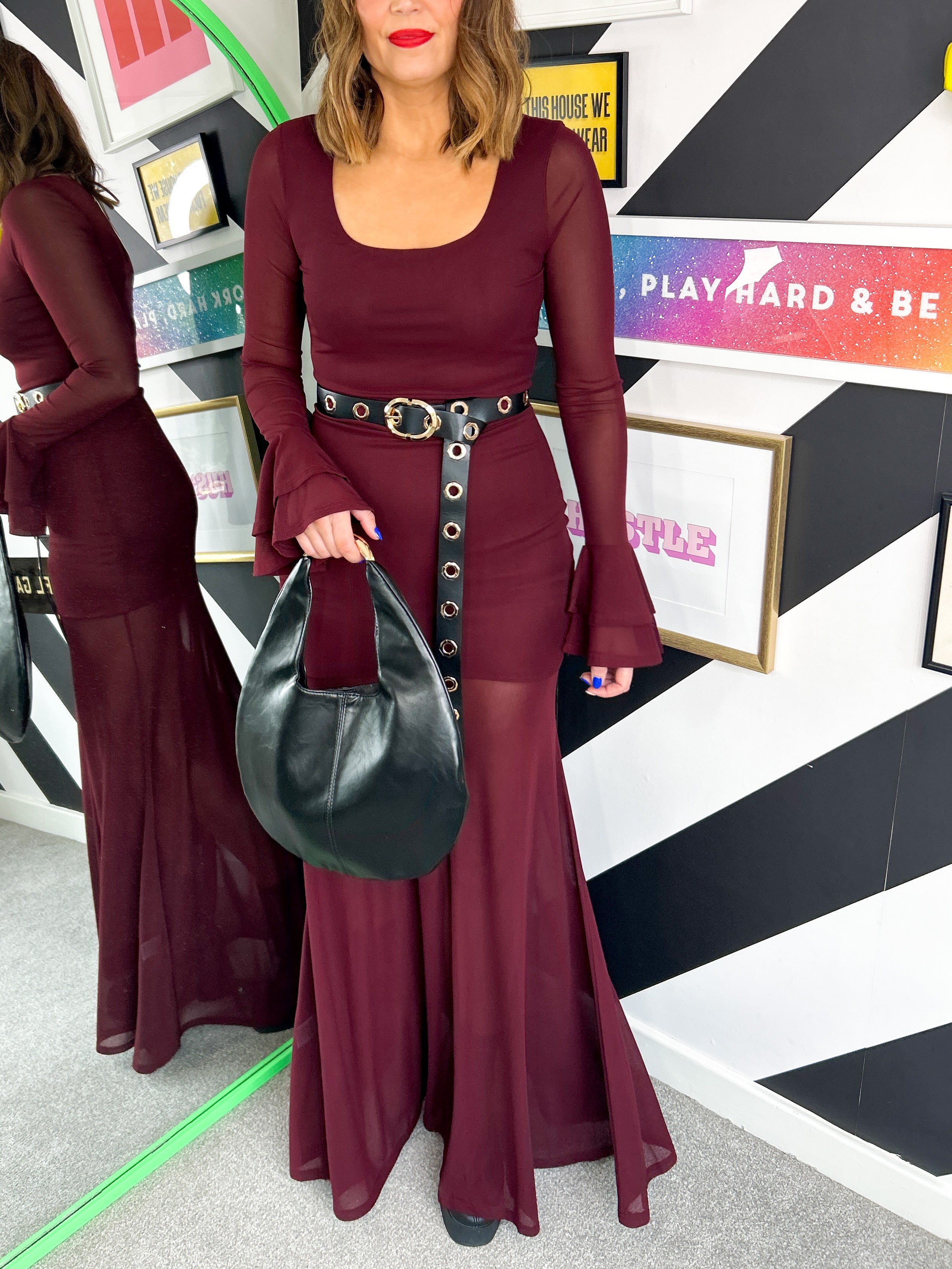 Temptress - Burgundy Sheer Mesh Maxi Dress