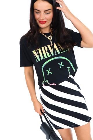 They say you can't always get what you want... but when it comes to fashion, you can Doll! It's time to hit the town and paint it, black (and red!) in this ultra cool band tee. Featuring a crew neck fit and the iconic Rolling Stones mouth graphic print centre stage with the MTV logo - we just can't get no satisfaction without this in our wardrobe rotation. Style oversized with a pair of metallic cowboy boots for a festival look that's sure to get you backstage.
