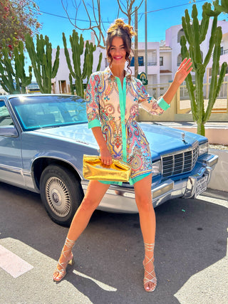 Out My Business - Multi Mint Paisley Mini Shirt Dress