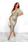 Why be average when you can be outstanding, Doll?! You're sure to be the standout stunner at any event in this knockout animal print satin midi dress. Featuring a super flattering knot front detail with dreamy flounce angel sleeves, this midi is roaring in leopard print and stuns in a silky satin finish. Simply add in glimmering gold accessories for the ultimate classy occasion look that's sure to turn heads.