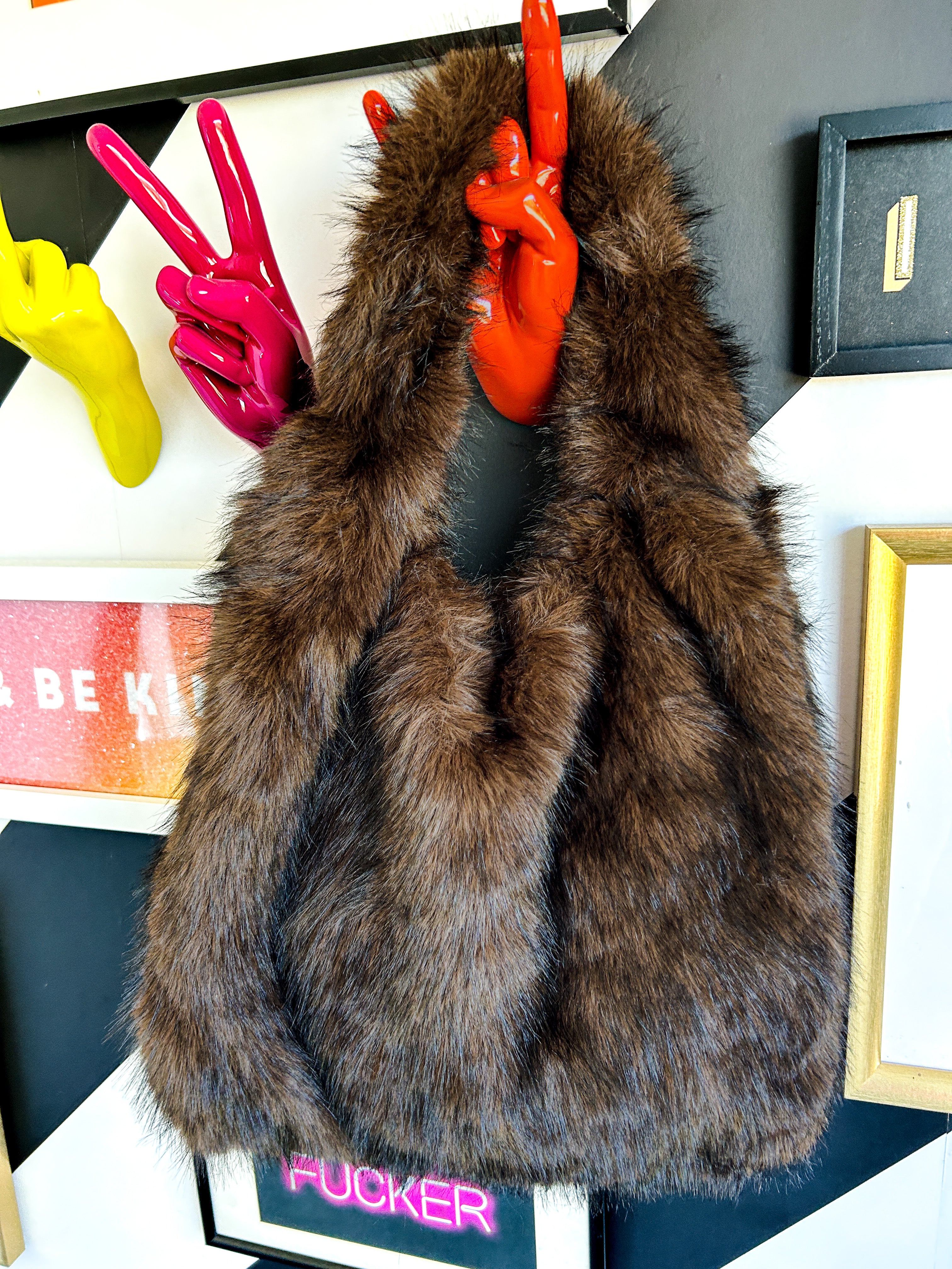 Are You Fur Real - Brown Faux Fur Shoulder Bag