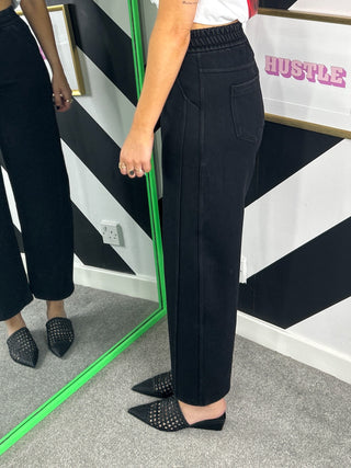 Wardrobe Essential - Black Denim Barrel Leg Joggers