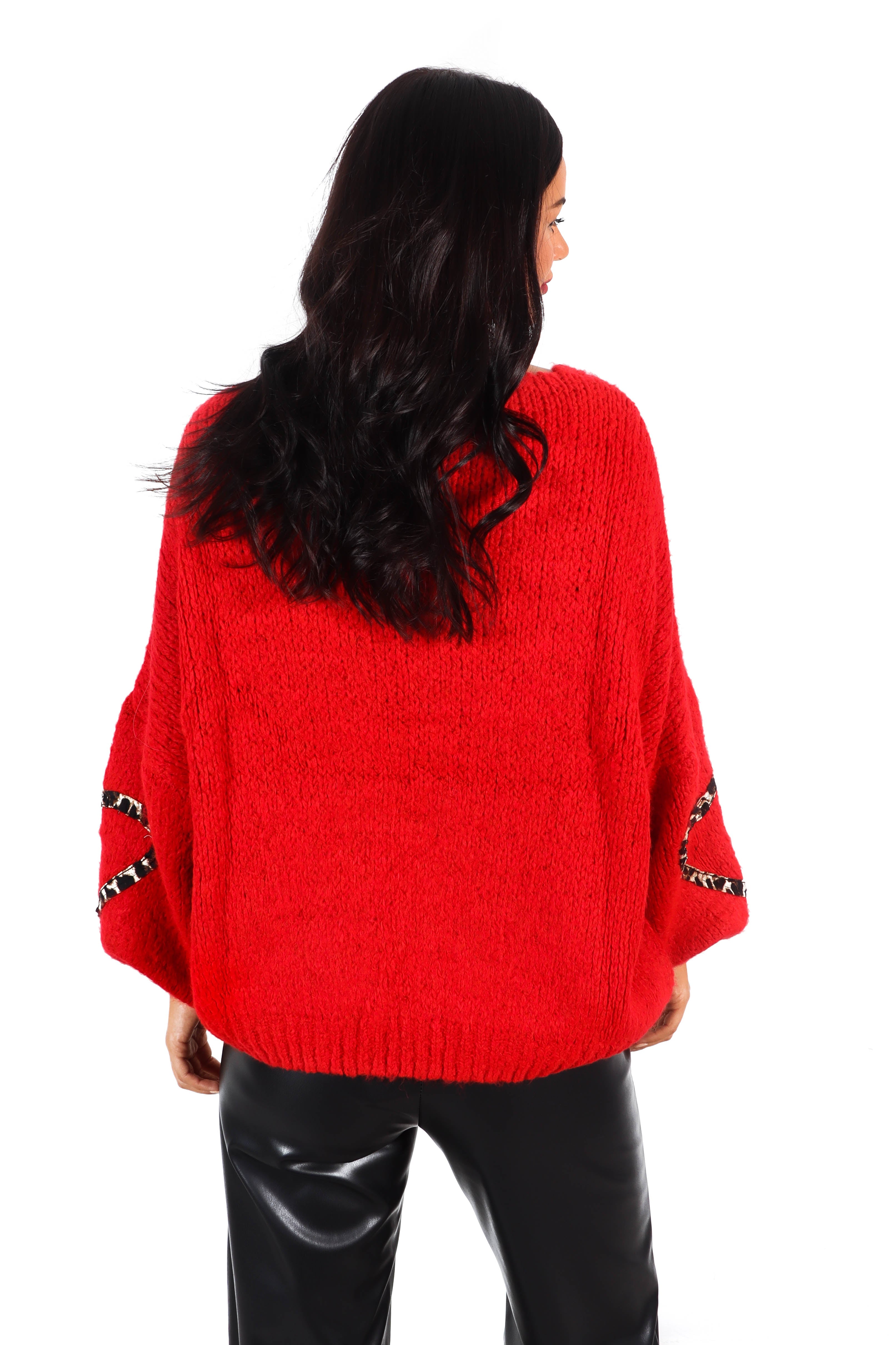 Bow Wild - Red Leopard Bow Reversible Knitted Jumper
