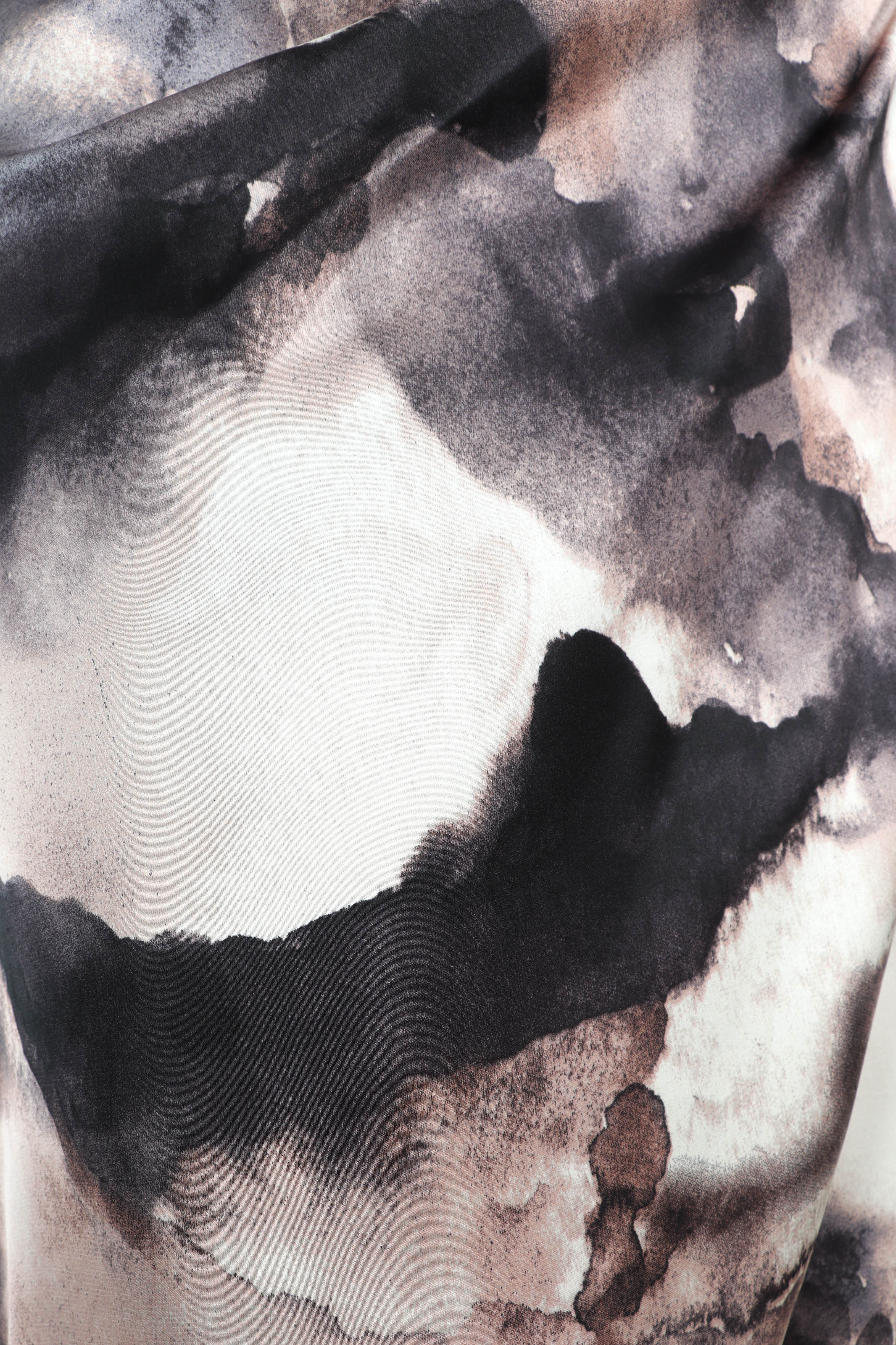 Epitome Of Elegance - Grey Cream Abstract Print Midi Dress