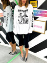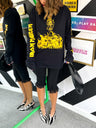 No need to get all dressed up, Doll, just come as you are! Smash off-duty chic in this grungy Nirvana graphic band t-shirt, featuring a classic crew neck tee fit in black with electric yellow and purple screen print Nirvana band graphic. Layer up for chillier days with a long sleeve top or collared shirt, or style with a sassy midi skirt with chunky boots for band nights at your local. Air guitars at the ready...