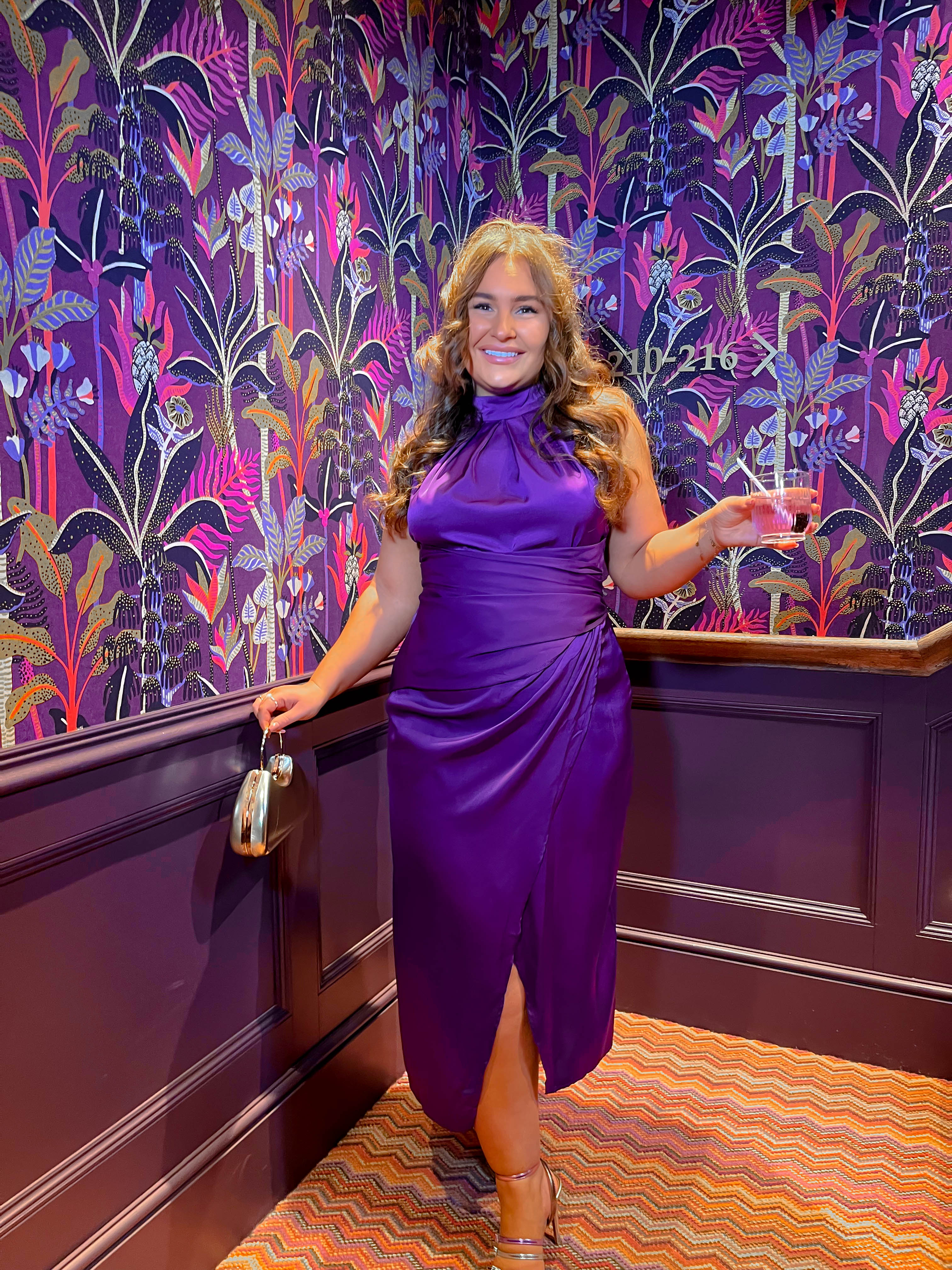 Too Halt To Handle - Purple Satin Halter Midi Dress