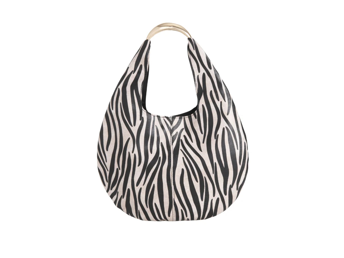 Make a bold entrance with this zebra print oval bag, crafted from smooth faux leather. Its playful pattern pairs perfectly with the sleek minimalistic metal handle, while the magnetic button clasp keeps your essentials secure and easily accessible. A fun and stylish companion that adds a wild twist to any outfit!